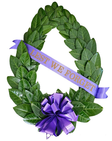 Traditionally made Laurel Wreath's popular for ANZAC Day and Remembrance Day. Designed with artificial or fresh Laurel leaves, each wreath comes with a Lest We Forget ribbon and a bow to match. It is available in three sizes Small, Medium and Large.